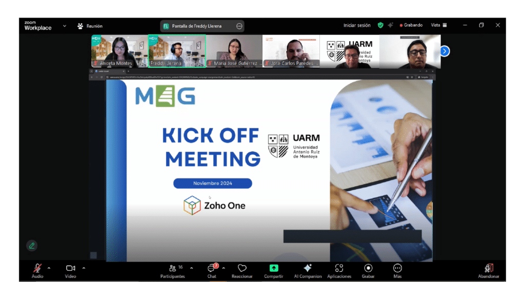 Uno de los pasos más importantes en cualquier proceso de implementación tecnológica es involucrar a los usuarios finales, en este caso, los asesores comerciales de la UARM. Por ello, organizamos una reunión presencial de onboarding, donde presentamos ZOHO CRM a los asesores, explicamos cómo funcionará la herramienta y destacamos los beneficios que podrán obtener al utilizarla en su día a día. Fue un momento clave para generar entusiasmo y receptividad por parte de los usuarios, quienes expresaron su alegría por contar con una herramienta que les permitirá gestionar de manera más efectiva sus prospectos y aumentar su tasa de cierres de ventas.